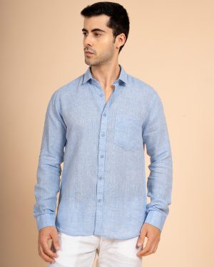 MENS PURE LINEN 60LEA CHAMBRAY SHIRT – DUTCH BLUE – FULL SLEEVE
