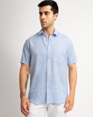 MENS PURE LINEN 60LEA CHAMBRAY SHIRT – DUTCH BLUE – HALF SLEEVE