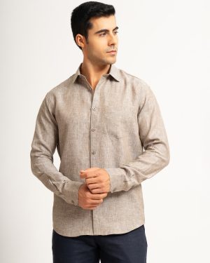 MENS PURE LINEN 60LEA CHAMBRAY SHIRT – DK BEIGE – FULL SLEEVE
