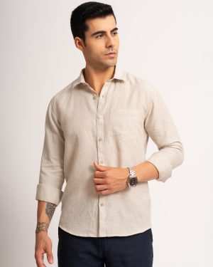 MENS PURE LINEN 60LEA CHAMBRAY SHIRT – NATURAL – FULL SLEEVE
