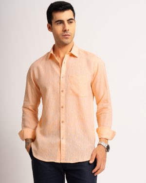 MENS PURE LINEN 60LEA CHAMBRAY SHIRT – ORANGE – FULL SLEEVE