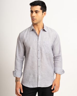 MENS PURE LINEN 60LEA CHAMBRAY SHIRT – SILVER – FULL SLEEVE