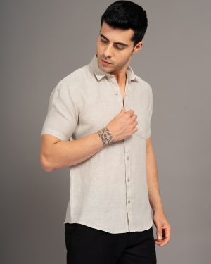 MENS PURE LINEN 60LEA CHAMBRAY SHIRT – NATURAL- HALF SLEEVE