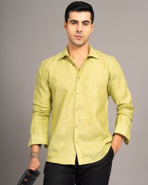 MENS PURE LINEN 60LEA CHAMBRAY SHIRT – PLUM GREEN – FULL SLEEVE