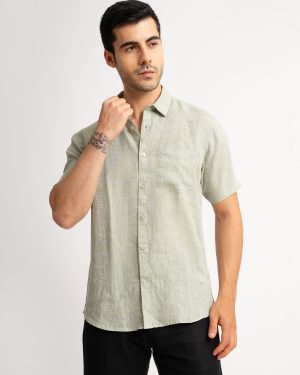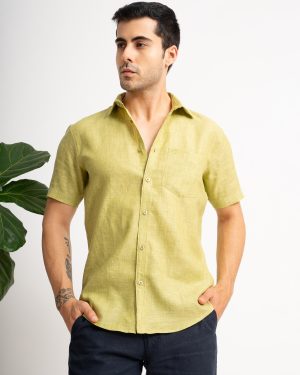 MENS PURE LINEN 60LEA CHAMBRAY SHIRT – LILY LEAF- HALF SLEEVE